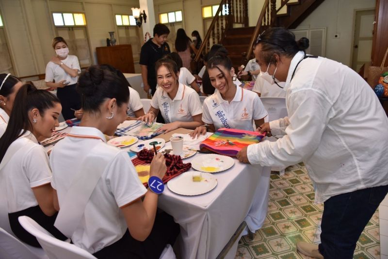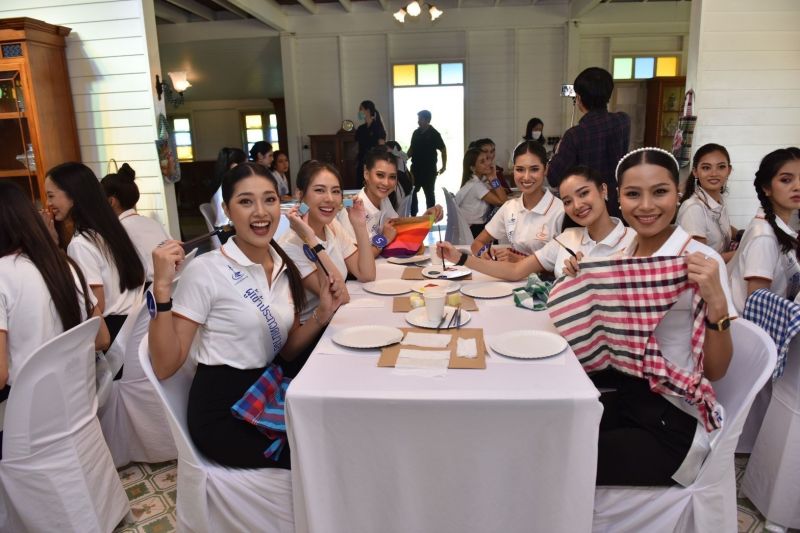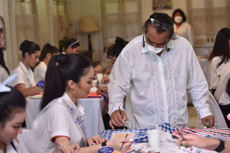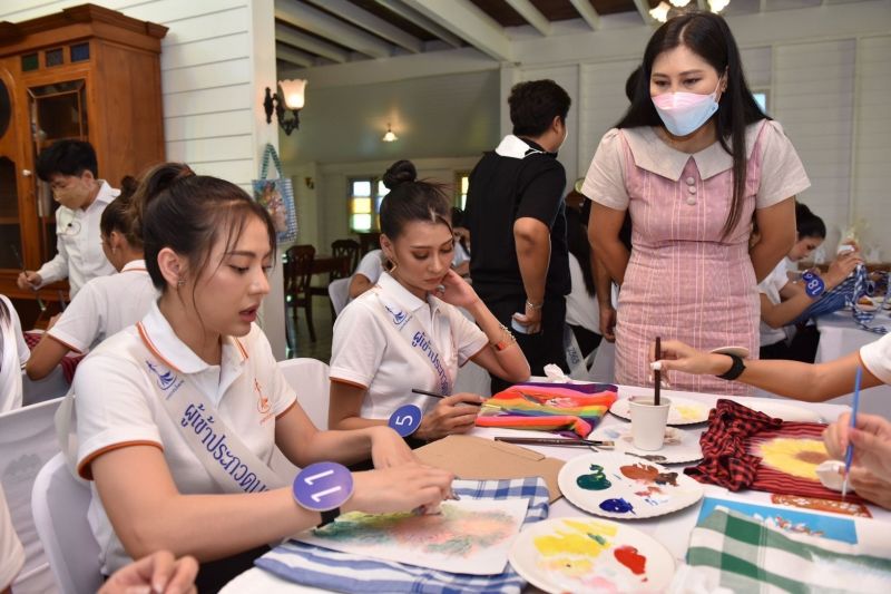 โดยวันที่สี่ของกิจกรรมเก็บตัว (30 มิ.ย.) ที่ผ่านมา สาวงามเดินทางสู่บ้านสวนสินี ซึ่งตั้งอยู่ภายใน เอส สตูดิโอ รังสิต (ESC Studio)เพื่อร่วมกิจกรรมเวิร์คช็อปสุดสร้างสรรค์ โดย บริษัท ไทยเบฟเวอเรจ จำกัด หนึ่งในผู้สนับสนุนการประกวด ร่วมกับ บริษัท ประชารัฐรักสามัคคี วิสาหกิจเพื่อสังคม (ประเทศไทย) จำกัด จัดกิจกรรมการเพ้นท์สีกระเป๋าผ้าขาวม้าทอมือ โดยมีวิทยากรผู้เชี่ยวชาญ คุณอนุภา มณีจันทร์ ประธานกลุ่มทอผ้าบ้านดอนแร่ “ดลมณี”จ.ราชบุรี พร้อมด้วย คุณณภัทรชนม์ อภิรัตน์อุดมชัย และคุณชัยวิทย์ อภิรัตน์อุดมชัย ครูช่างศิลป์จากกลุ่มลุ่มน้ำแม่กลอง ให้เกียรติมาเป็นวิทยากรในการสอนเทคนิคการสร้างสรรค์ศิลปะบนกระเป๋าผ้าขาวม้าทอมือ ซึ่งเป็นผลิตภัณฑ์จากกลุ่มผู้ผลิตภายใต้โครงการผ้าขาวม้าท้องถิ่นหัตถศิลป์ไทย ได้แก่ บ้านไทรงาม จังหวัดสระแก้ว บ้านสวนปอ จังหวัดร้อยเอ็ด