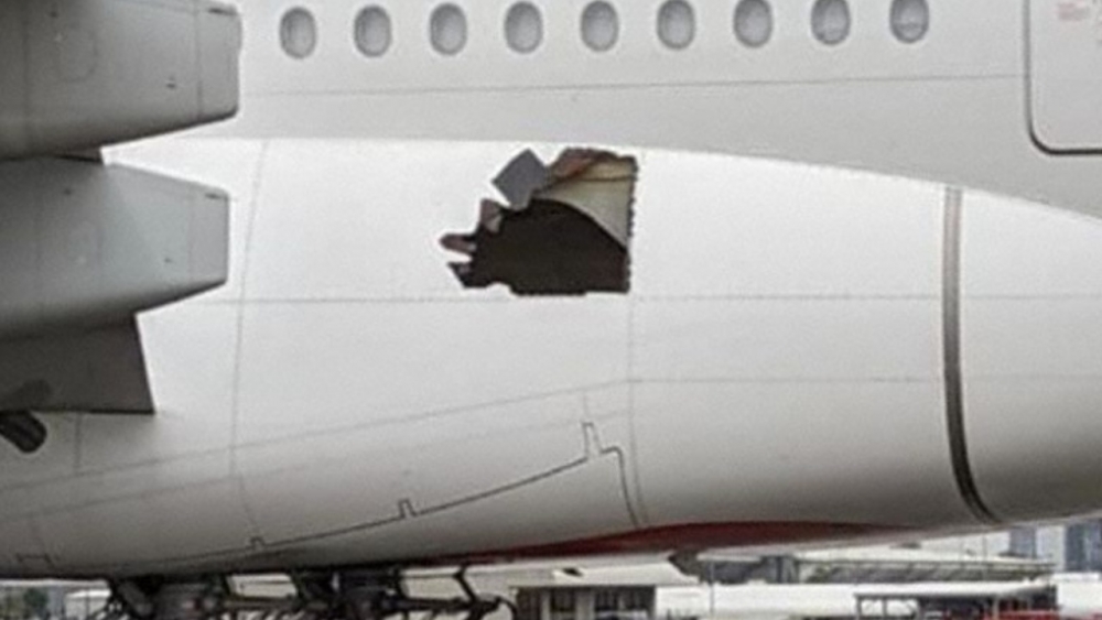 ลูกเรือและผู้โดยสารตกใจไปตามๆ กัน เมื่อเห็นรูโหว่ขนาดใหญ่ด้านข้างเครื่องบินเอมิเรตส์ ตอนเครื่องบินลงจอดที่ออสเตรเลีย หลังเกิดเสียงดังสนั่นกลางเวหา คิดว่ายางล้อระเบิด