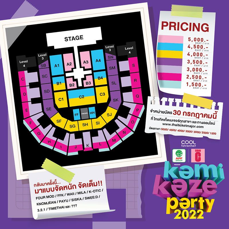 นับเป็นข่าวดีที่สุดแห่งปีที่ “เฮียฮ้อ-สุรชัย เชษฐโชติศักดิ์” ประธานเจ้าหน้าที่บริหาร บมจ.อาร์เอส ได้ออกมาประกาศถึงเวลาสิ้นสุดคอนเลื่อนสำหรับชาวกามิที่เฝ้ารอการกลับมาของ “COOLfahrenheit ร่วมกับ อำพลฟูดส์ 35 ปี และคามูซี present kamikaze party 2022” ปาร์ตี้สุดมันส์ฟันกว่าเดิม ครบที่สุดกับศิลปินยุค 2000 ทั้ง “FOUR-MOD (โฟร์-ศกลรัตน์, มด-ณปภัช)”, “FFK (เฟย์-พรปวีณ์, ฟาง-ธนันต์ธรญ์,แก้ว-จริญญา)”, “WAII (หวาย-ปัญญริสา)”, “MILA (มิล่าจามิล่า)”, “K-OTIC (เขื่อน-ภัทรดนัย, โทโมะ วิศว, ป๊อบปี้-ภานุ, เคนตะ, จองเบ ปาร์ค)”, “KNOMJEAN (กุลมาศสารสาส)”, “PAYU (พายุ คลาร์ค)”, “SISKA (มีน พัฑฒิดา, แจม-ชลธร)”, “SWEE:D (มีน-พัฑฒิดา, พิม-พิมประภา, จินนี่-เขริกา), “3.2.1 (URBOYTJ, GAVIN.D,ป๊อบปี้-ชัชชญา)” และ “TIMETHAI (ธามไท แพลงศิลป์)” กลับมารวมพลคนกามิครั้งนี้..มาแบบจัดหนัก จัดเต็มด้วยแสง เสียงSong list และสเตจเวที เต็มรูปแบบ พร้อมเซอร์ไพรส์แขกรับเชิญพิเศษ ในวันเสาร์ที่ 15 ตุลาคมนี้ ที่ IMPACT ARENA เมืองทองธานีจำหน่ายบัตร 30 กรกฎาคมนี้ ที่ ไทยทิคเก็ตเมเจอร์ทุกสาขา และทางออนไลน์ Thaiticketmajor.com ติดตามรายละเอียดเพิ่มเติมได้ที่ COOLfahrenheit และ COOLISM.net