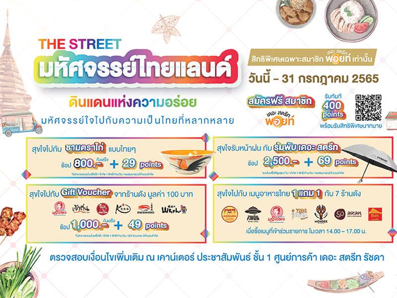 ชวนชิมความอร่อยในงาน “มหัศจรรย์ไทยแลนด์ ดินแดนแห่งความอร่อย” รับสิทธิพิเศษมากมาย ถึง 31 ก.ค.ที่ ศูนย์การค้าเดอะ สตรีทรัชดา