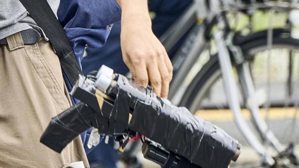 อาวุธที่นายยามากามิใช้ในการก่อเหตุดูคล้ายกับปืนลูกซองแฝดที่ประดิษฐ์ขึ้นเอง โดยภาพจากสื่อเผยให้เห็นว่า ปืนมีลักษณะเป็นท่อเหล็ก 2 ท่อที่ถูกเทปกาวพันติดกับท่อนไม้ ความยาวประมาณ 40 ซม. สูง 20 ซม. ขณะที่สำนักข่าว เกียวโด บรรยายว่า “อาวุธที่ใช้โดยคนร้ายทำให้เกิดเสียงดังเทียบได้กับเสียงระเบิด และมีควันสีขาวลอยออกมาหลังจากที่ยิงไปแล้ว และได้กลิ่นดินปืนตามมา”