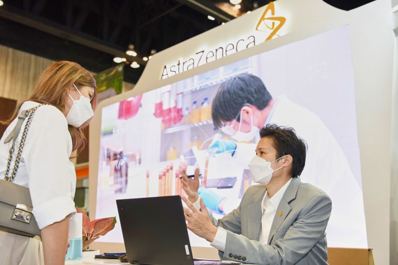 • โซน “นวัตกรรมการแพทย์เพื่อชุมชน” นำเสนอไบโอเทคโนโลยีเพื่อยกระดับโซลูชันด้านการดูแลสุขภาพบนความร่วมมือกับพันธมิตร อย่าง Ever Medical Technologies นำโปรแกรมจำลองภาพเสมือนจริงของปอดในรูปแบบ 3 มิติ เพื่อให้เห็นถึงความแตกต่างระหว่างปอดปกติ และปอดที่เป็นมะเร็ง พร้อมนำเทคโนโลยีการจัดการข้อมูล เพื่อสนับสนุนการวิจัยทางด้านคลินิก (Ever clinical trial support) และ การระบุข้อมูลเชิงลึกของข้อมูลทางการแพทย์ ทางด้าน (Medical Data Annotation) เพื่อการพัฒนา AI for medical application มาจัดแสดง นอกจากนี้ แอสตร้าเซนเนก้ายังนำ Asthma Excellence Mobile Application แอปพลิเคชันสำหรับบุคลากรทางการแพทย์ ซึ่งเป็นนวัตกรรมที่แอสตร้าเซนเนก้าร่วมกับสำนักงานส่งเสริมเศรษฐกิจดิจิทัล (DEPA) ให้การสนับสนุนสมาคมอุรเวชช์แห่งประเทศไทย ในพระบรมราชูปถัมภ์ ในการพัฒนาขึ้นเพื่อให้การดูแลผู้ป่วยโรคหืดเป็นเรื่องง่ายและเพิ่มประสิทธิภาพในการดูแลรักษาผู้ป่วยโรคหืดตามมาตรฐานสากล เป็นต้น