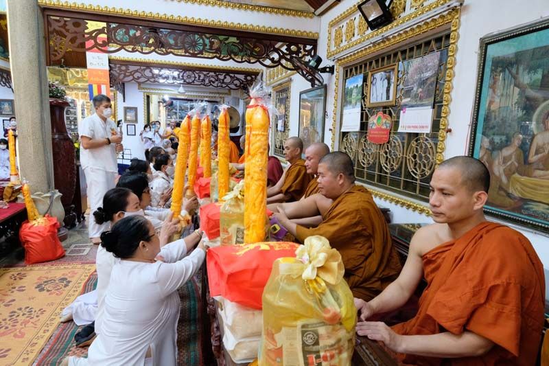 11 กรกฎาคม 2565 พระเดชพระคุณพระวิเทศธรรมาภรณ์ ประธานมูลนิธิธรรมกาย นำคณะสงฆ์และศิษยานุศิษย์วัดพระธรรมกาย เดินทางไปประกอบพิธีถวายเทียนพรรษา จตุปัจจัยไทยธรรมและอัญเชิญพระบรมสารีริกธาตุเพื่อประดิษฐาน ณ วัดโฝ่มินห์ (Pho Minh) หรือ วัดวิชชาวัฒนาวิหาร เขตก่อวัป นครโฮจิมินห์ ซึ่งเป็นวัดพุทธฝ่ายเถรวาท โดยได้รับความเมตตาจาก พระเถราจารย์ ทิก เถี่ยน เติม (กุสลจิตฺโต) รองประธานคณะกรรมการบริหารพุทธสมาคมแห่งชาติเวียดนาม เจ้าอาวาสวัดโฝ่มินห์ เป็นประธานฝ่ายสงฆ์ และได้กราบอาราธนาพระเถรานุเถระชั้นผู้ใหญ่ อาทิ เจ้าอาวาสและพระเถระจาก วัดกี่เวียน (วัดเชตวัน) วัดเฟื๊อก หาย วัดเถี่ยน เลิม วัดเหวียน ถวี๋ วัดบู๋กวางและวัดเถรวาทอื่นๆ ในนครโฮจิมินห์และจังหวัดใกล้เคียง เข้ารับถวายเทียนพรรษาและไทยธรรมในครั้งนี้กว่า 30 วัด ซึ่งได้รับเกียรติจากพุทธศาสนิกชนผู้มีจิตศรัทธา ทั้งชาวไทยและเวียดนาม ร่วมเป็นเจ้าภาพเป็นจำนวนมาก ท่ามกลางบรรยากาศพุทธประเพณีที่สงบ เรียบง่ายและศักดิ์สิทธิ์