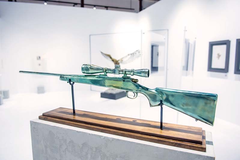 DUEL ART EXHIBITION นิทรรศการแสดงผลงานของ ปิยทัต เหมทัต และ แทน โฆษิตพิพัฒน์ เป็นการรวมตัวกันของ 2 ศิลปินที่มีความชอบและหลงใหลในอาวุธปืนเหมือนกัน โดยมีมุมมองการเล่าเรื่องของสิ่งที่โดยทั่วไปแล้ว “ปืน” ถูกมองว่าเป็นของต้องห้าม อันตราย ก่อให้เกิดความรุนแรงและนำมาซึ่งความเศร้าโศก และการสูญเสียผ่านการทำงานศิลปะที่แตกต่างกันของศิลปินทั้งสอง โดยผลงานชุด Bullistics ของ ปิยทัต เหมทัต เป็นโปรเจกท์ที่มีการพัฒนามาอย่างต่อเนื่องตั้งแต่ปี 2018 โดยระหว่างระยะเวลา 4 ปีที่ผ่านมา ปิยทัตได้มีการศึกษา ทดลอง ลองผิดถูกไปพร้อมๆ กับการสร้างสรรค์ชิ้นงานแต่ละชิ้นผลงานชุดนี้ประกอบไปด้วยภาพถ่าย ประติมากรรม และภาพเคลื่อนไหวที่แสดงให้เห็นถึงด้านของความงดงามที่มาพร้อมกับอนุภาคของการทำลายล้างของอาวุธปืนไม่ว่าจะเป็นดีไซน์รูปทรงของปืนที่มีลักษณะความสวยงามแบบเฉพาะตัวแตกต่างกันไปในแต่ละรุ่น ความงดงามที่เกิดขึ้นหลังจากเกิดการเหนี่ยวไกปืนที่ไม่มีใครมีโอกาสได้เห็นหรือความงดงามที่มาพร้อมกับความรุนแรงของอนุภาคการทำลายล้างที่เกิดขึ้นเมื่อกระสุนปะทะกับวัตถุ…หรือร่างกายของมนุษย์