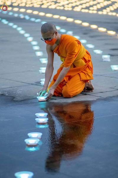 วัดพระธรรมกายจัดงานบุญวันอาสาฬหบูชา – สงฆ์ทั่วโลก 1 ล้านรูป เจริญพระพุทธมนต์ออนไลน์ อธิษฐานจิต แผ่เมตตาให้ทุกคนทั่วโลกรอดพ้นและปลอดภัยจากโรคภัย และจุดประทีป-ชวนนั่งสมาธิ ถวายเป็นพุทธบูชา