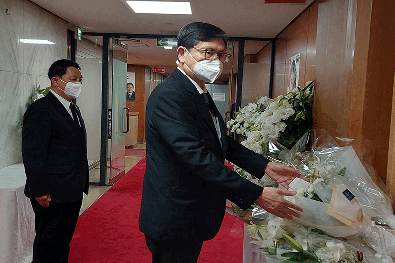 13 กรกฎาคม 2565 ศ.(พิเศษ) ดร. เอนก เหล่าธรรมทัศน์ รมว.การอุดมศึกษา วิทยาศาสตร์ วิจัยและนวัตกรรม (อว.) เดินทางไปยังที่ทำการพรรคแอลดีพี ประเทศญี่ปุ่น เพื่อลงนามแสดงความเสียใจ ต่อการถึงแก่อสัญกรรมของนายชินโซ อาเบะ อดีตนายกรัฐมนตรีญี่ปุ่น โดยมีนายฮิโรชิ ฮาจิยามา อดีต รมว.กระทรวงการเศรษฐกิจ การค้าและอุตสาหกรรม (METI) ในสมัยของนายกรัฐมนตรีชินโซ อาเบะ ให้การต้อนรับ ณ ที่ทำการพรรคแอลดีพี กรุงโตเกียว ประเทศญี่ปุ่น โดย ศ.(พิเศษ) ดร.เอนก ได้แสดงความเสียใจและได้มอบดอกไม้แสดงความเสียใจในโอกาสนี้ด้วย