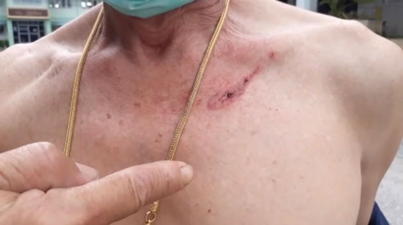 แต่ขณะที่ตนยืนพูดคุยกับนายกเทศมนตรีคนดังกล่าว โดยที่ตนไม่คาดคิด จากนั้นนายกเทศมนตรีได้เดินตรงเข้ามาใช้มือต่อยเข้าที่บริเวณหน้าอกและใบหน้าตนอย่างรุนแรง ทำให้ตนได้รับบาดเจ็บ ซึ่งตนไม่ได้ตอบโต้แต่อย่างใดและขณะเกิดเหตุตำรวจ สภ.บ้านค่าย 2 นายก็อยู่ในที่เกิดเหตุได้เข้าห้ามปราม