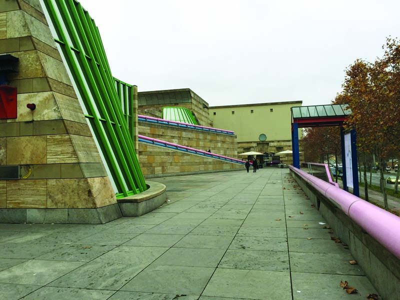 นักท่องเที่ยวที่ชื่นชอบศิลปะ นอกจากจะเยือน Kunstmuseum Stuttgart แล้ว สถานที่ท่องเที่ยวที่ต้องเยือนให้ได้อีกแห่งไม่เช่นนั้นจะเสียดายแย่ นั่นคือ New State Gallery Stuttgart หรือ Neue Staatsgalerie หรือ Neue Galerie มิวเซียมที่ถูกสร้างขึ้นระหว่างปี 1979-84 เมื่อเทศบาลเมือง Stuttgart ดำริที่จะขยายมิวเซียมใหม่ให้ใหญ่กว่าเดิมเพื่อรองรับผลงานศิลปะรุ่นใหม่ให้มากขึ้นจึงได้จัดการแข่งขันประกวดออกแบบมิวเซียมใหม่ในปี 1977
