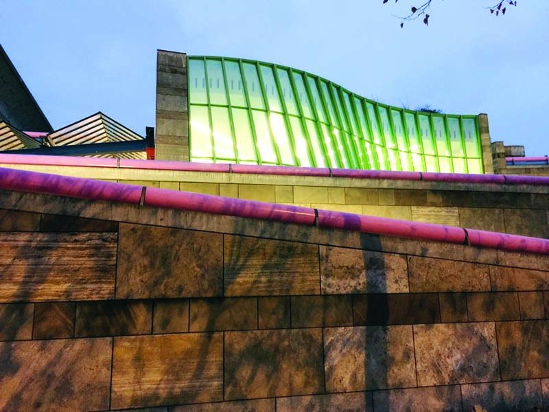 หากนักท่องเที่ยวที่เดินมาจากส่วนที่ไกลจากมิวเซียมจะสามารถตื่นตาตื่นใจกับขนาดของมิวเซียมที่ใหญ่โตมากและเป็นงานก่อสร้างสถาปัตยกรรมที่โดดเด่นแปลกตาคล้ายเขาวงกตจากยุคโบราณของอียิปต์ แต่กลับมีความเป็น Abstract แนวPostmodernism ที่น่าทึ่งอันเป็นผลมาจากการที่สถาปนิกเน้นการทำงานแบบ Collage หรือเอาแต่ละชิ้นมาต่อกันนั่นเอง