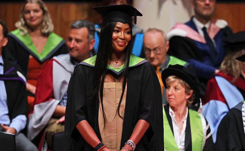 O นาโอมิ แคมป์เบลล์ ซูเปอร์โมเดล วัย 52 ปี เข้ารับปริญญาเอกกิตติมศักดิ์ จากมหาวิทยาลัยUniversity for the Creative Arts แห่งอังกฤษในฐานะที่สร้างผลงานอันโดดเด่นและมีส่วนสำคัญในการพัฒนาอุตสาหกรรมแฟชั่น ทำเอาเจ้าตัวซาบซึ้งจนต้องปาดน้ำตา เพราะเป็นที่รู้กันดีว่า เธออุทิศตัวให้กับวงการแฟชั่นอย่างแท้ทรูมานานถึง 37 ปีนับตั้งแต่เริ่มยึดอาชีพเป็นนางแบบอาชีพเมื่ออายุเพียง15 ปีเท่านั้น นาโอมิกล่าวสุนทรพจน์สุดประทับใจในพิธีรับปริญญาว่า “อย่าปล่อยให้ใครมาเปลี่ยนความรู้สึกของคุณ หรือเปลี่ยนมุมมองและสิ่งที่คุณต้องการ ขออย่ายอมแพ้” พร้อมทั้งกล่าวสรรเสริญคุณแม่ของเธอ ว่าเป็นผู้อยู่เบื้องหลังความสำเร็จของลูกสาวคนนี้ด้วยเคล็ดลับ 3 คำ คือ การอุทิศตัว,ความมุ่งมั่น และแรงผลักดัน จนทำให้เธอมีวันนี้