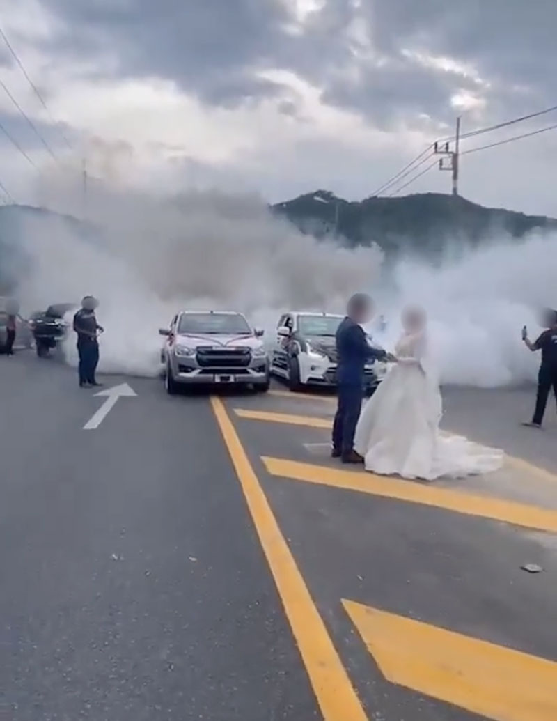 น่าประทับใจ!? ชาวเน็ตจวก พรีเวดดิ้งหวานๆ ปิดถนน เบิ้ลเครื่อง ควันโขมง