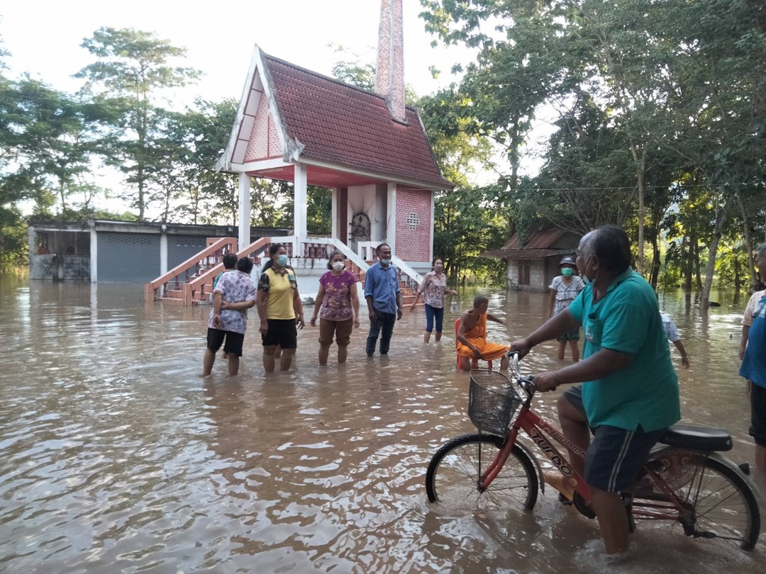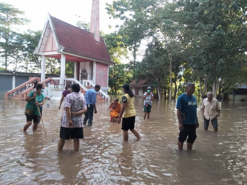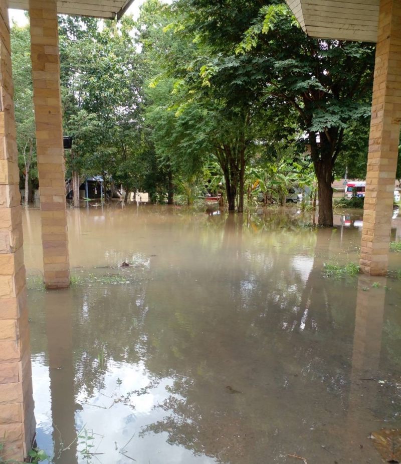 วันนี้ (20 ก.ค.65) ผู้สื่อข่าวรายงานว่า ที่วัดป่าธรรมวิเวก หมู่ 10 ต.ศรีฐาน อ.ภูกระดึง จ.เลย มีชาวบ้านกว่า 50 คนในหมู่บ้านที่ได้รับผลกระทบจากการออกโฉดที่ดินแล้วปิดทางน้ำสาธารณะในพื้นที่ทำให้น้ำที่ไหลมาจากทางเหนือไม่สามารถไหลลงที่ต่ำสู่แม่น้ำลำคลองได้ เนื่องจากมีที่ดินไปกันคลองระบายน้ำ ทำให้ได้รับความเดือดร้อนไปทั้งหมู่บ้าน รวมทั้งวัด โดยระดับน้ำสูงกว่า 40-50 เซนติเมตร น้ำท่วมขังมาแล้วกว่า 20 วัน ปัจจุบันน้ำยังไม่ลดชาวบ้านเดือดร้อนหนัก พระสงฆ์ สามเณรไม่สามารถออกไปบิณบาตได้ รวมทั้งการฌาปนกิจศพก็ไม่สามารถทำได้เนื่องจากน้ำท่วมเมรุ ปูน ผนังอาคารลอกเสียหาย ตอนนี้ยังไม่มีหน่วยงานเข้ามาแก่ไขและดูแล
