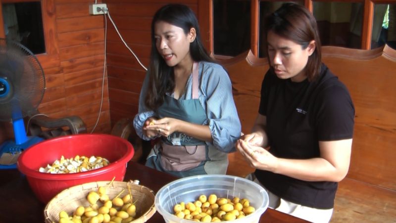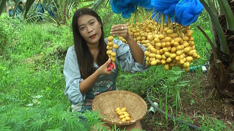 ขณะที่ น.ส.ดราวรรณ บัวเขียว เกษตรรกรปลูกอินทผลัมอีกราย เปิดเผยว่า เดิมทีครอบครัวตนได้ปลูกมะม่วงขาย แต่ราคามะม่วงตกต่ำก็หันมาปลูกต้นอินทผลัมเมื่อ 3 ปีก่อน ณ.วันนี้ ถือว่าคืนทุนแล้วตั้งแต่ปีที่ 2 โดยใช้เนื้อที่ปลูกเพียง 1 ไร่เศษๆจำนวน 28 ต้นเท่านั้นและในช่วงโควิค ก็ได้รับผลกระทบจึงได้คิดค้นแปรรูปลูกอินทผลัม ในลักษณะผลิตเป็นอุตสาหกรรมในครอบครัว คือ ทำอินทผลัมลอยแก้วและน้ำอินทผลัมสด ซึ่งกรรมวิธีง่ายๆ การทำอินลอยแก้วจะต้องเลือกผลที่แก่จัด ผ่าเมล็ดและผ่าผลแยกเป็นซีกออก เคี้ยวน้ำตาลบรรจุขวด หรือกระปุก ส่วนน้ำอินผลัมสดนั้นจะต้องนำผลไปปั่นอัตราส่วนอินทผลัม 1 ต่อน้ำ 1 พร้อมบรรจุแช่เย็นส่งขายสามารถสั่งซื้อทางเพจ “สวนอินทผลัม บัวเขียว” ต.ไทรย้อย อ.เนินมะปราง พิษณุโลกหรือติดต่อซื้ออินทผลัมสดๆที่หน้าสวนได้ทุกวัน