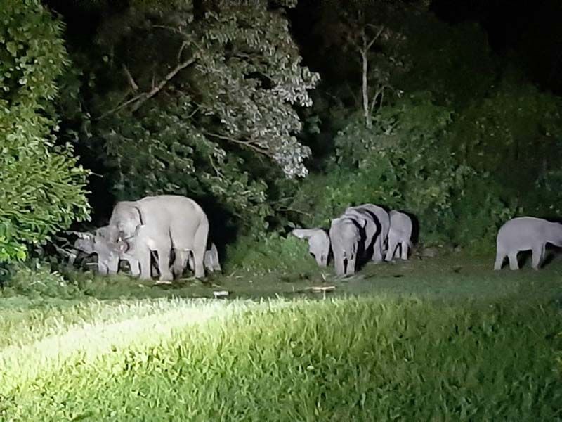 17 ก.ค.65 เวลา 20.00 น. เจ้าหน้าที่ทีมเฝ้าระวังช้างป่า ขญ.13 (นางรอง) อุทยานแห่งชาติเขาใหญ่ กลุ่มเพื่อนช้างนครนายก และจิตอาสาเฝ้าระวังช้างป่า ได้รับแจ้งจากเจ้าหน้าที่สนามกอล์ฟรอยัลฮิล พบช้างป่าประมาณ 20-25 ตัว เข้ามาหาอาหารกิน อยู่ใกล้สวนส้มโอ