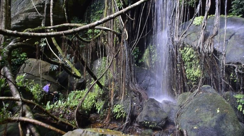 นักท่องเที่ยวที่ชื่นชอบความสวยงามทางธรรมชาติที่บริสุทธิ์ต้องห้ามพลาดการเดินทางไม่ลำบากสามารถเดินทางเท้าเข้าไปจากตัวค่ายพักแรมภูหินร่องกล้า ระยะทางประมาณ 1 กิโลเมตร นักท่องเที่ยวจะได้พบกับความสวยงามทางธรรมชาติอันบริสุทธิ์ที่สวยงามตลอด 2 ฝั่งทางที่เดินเข้าไป และเมื่อเข้าไปถึงจุดน้ำตก จะเป็นโขดหินน้อยใหญ่ มีรากไทรยาวๆ ไหลเป็นเส้นไปทั่วบริเวณ มีเถาวัลย์เล็กใหญ่เลื้อยสวยงามไปทั่วบริเวณ – 003