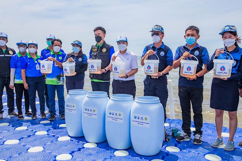 ปตท.สผ. เริ่มดำเนินโครงการ “ศูนย์การเรียนรู้เพาะฟักสัตว์น้ำเศรษฐกิจ” มาตั้งแต่ปี 2556 เพื่อฟื้นฟูทรัพยากรทางทะเลและเสริมสร้างรายได้ให้กับชุมชนชายฝั่ง ตามแนวทาง “ทะเลเพื่อชีวิต” (Ocean for Life) โดยมีเป้าหมายจะจัดตั้งศูนย์การเรียนรู้ฯ จำนวน 19 ศูนย์ใน 17 จังหวัดรอบอ่าวไทย ภายในปี 2573ปัจจุบัน สามารถจัดตั้งศูนย์การเรียนรู้ฯไปแล้ว 11 ศูนย์ ในจังหวัดต่างๆ รอบอ่าวไทย เช่น สงขลา ปัตตานี นครศรีธรรมราช สุราษฎร์ธานี เพชรบุรี ประจวบคีรีขันธ์ สมุทรสงคราม ระยอง และชุมพร สามารถเพาะฟักลูกปูและพันธุ์สัตว์น้ำปล่อยคืนสู่ทะเลได้กว่า 9,600 ล้านตัว ช่วยเพิ่มทรัพยากรสัตว์น้ำ และทำให้ชาวประมงพื้นบ้านมีรายได้เพิ่มขึ้นเฉลี่ยครัวเรือนละกว่า 80,000 บาทต่อปี รวมทั้งสามารถขยายเครือข่ายกลุ่มอนุรักษ์ทรัพยากรทางทะเล ได้กว่า 2,400 คน