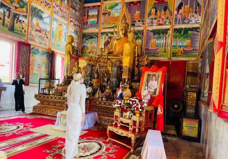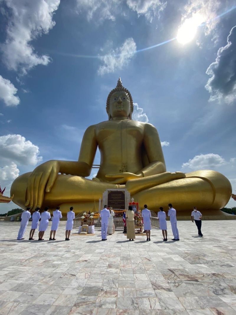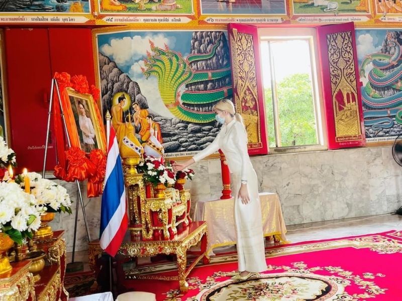 นับเป็นมงคลชีวิตอย่างหาที่สุดไม่ได้สำหรับ “พีช-สุพิชญา ไพฑูลย์” ประธานอนุกรรมการฝ่ายกิจกรรมส่งเสริมพระพุทธศาสนา มหาวิทยาลัยมหาจุฬาลงกรณราชวิทยาลัยประจำวิทยาเขตนครสวรรค์ ที่เป็นประธานในพิธีอัญเชิญเทียนพรรษาพระราชทานทูลกระหม่อมหญิงอุบลรัตนราชกัญญา สิริวัฒนาพรรณวดี โดยมีดร.ศุภาชัย ผ่องสวัสดิ์ที่ปรึกษากรมการศาสนา ,ว่าที่รต.ธนัท ชัชวาลย์ เลขานุการอนุกรรมการฝ่ายกิจกรรมส่งเสริมพระพุทธศาสนามหาวิทยาลัยมหาจุฬาลงกรณราชวิทยาลัย ร่วมอัญเชิญขบวนเทียนพรรษา ออกจากที่ทำการ ณ วัดม่วง อ.วิเศษชัยชาญ จ.อ่างทอง เมื่อวันที่ 20 กรกฎาคม พ.ศ 2565 เวลา 13.30 น. โดยมีข้าราชการชุดขาว 2 นาย อัญเชิญเทียนพรรษาลงจากขบวนรถ และอัญเชิญตั้งประดิษฐานหน้าโต๊ะหมู่หน้าพระรูป ประธานในพิธีจุดธูปเทียนบูชาพระรัตนตรัยและเปิดกรวยถวายราชสักการะหน้าพระรูป แล้วถวายความเคารพ สมาทานศีล5 พระสงฆ์ให้ศีล เชิญที่ปรึกษากรมการศาสนาฯกล่าวรายละเอียดและนำกล่าวคำถวายเทียนพรรษา ประธานในพิธี เชิญเทียนพรรษา ถวายแด่พระสงฆ์ พระสงฆ์อนุโมทนาเจริญพระชัยมงคลคาถา ประธานและผู้มีเกียติถวายจตุปัจจัยไทยธรรมแด่พระสงฆ์ จำนวน 5 รูป เมื่อเสร็จพิธีนับเป็นที่ปลาบปลื้มปิติยินดีของพสกนิการเป็นอย่างยิ่ง ที่ได้รับพระราชทานเทียนพรรษา