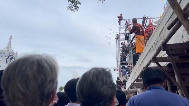 ซึ่งในการโปรยทานนั้นก็จะให้พระลูกวัดขึ้นไปบนนั่งร้านสูง แล้วนำเงินธนบัตร ใบละ 100 บาท จำนวน 3,000 ใบ ส่วนทองคำนั้นทางวัด ก็ใช้วิธีนำธนบัตรใบละ 20 บาท พร้อมกับตราประทับของวัดไว้ และโปรยพร้อมกันที ซึ่งมีประชาชนต่างรอรับเงินที่โปรยกันอย่างคึกคัก