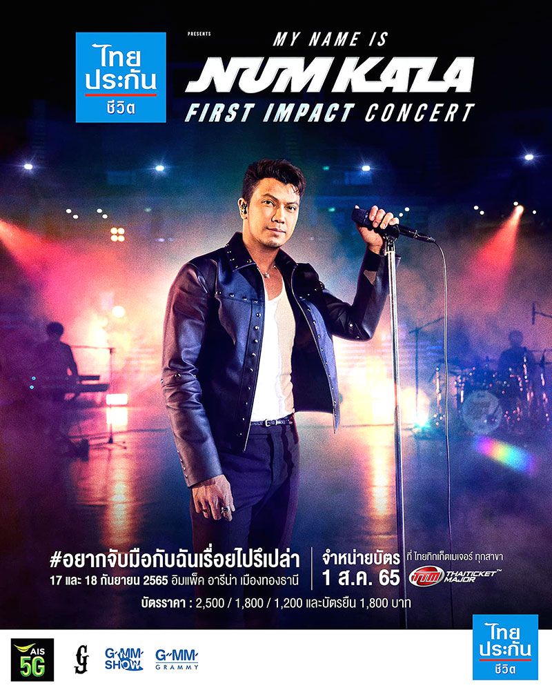 “หลังจากที่ผมได้ Live ประกาศจัดคอนเสิร์ตไปเมื่อวันที่ 30 มิถุนายนที่ผ่านมาทาง Facebook Num KALA ซึ่งก็ได้กระแสตอบรับจากแฟนเพลงดีมากๆ ครับผมเข้าไปอ่านทุกคอมเม้นต์ ชื่นใจมากครับขอบคุณทุกกำลังใจที่มีให้กันเรื่อยมาจากวันแรกที่เรารู้จักกันจนถึงวันนี้ สำหรับคอนเสิร์ตในครั้งนี้ จะจัดขึ้น 2 รอบการแสดงในวันเสาร์ที่ 17 และ วันอาทิตย์ที่ 18 กันยายน 2565 ครั้งนี้เป็นคอนเสิร์ตใหญ่ครั้งแรกของผมที่อิมแพ็ค อารีน่า แต่ผมจะทำให้เราได้รู้สึกใกล้กันมากที่สุดเหมือนกับที่ผมติด#อยากจับมือกับฉันเรื่อยไปรึเปล่านอกจากเรื่องความใกล้ชิดแล้วเรื่องเพลงที่นำมาร้องในคอนเสิร์ตครั้งนี้ผมคัดเพลงฮิตจัดเต็มเรียกว่าเตรียมมาให้แฟนๆ มีความสุขความสนุกตลอดทั้งโชว์แต่จะมีเพลงอะไรบ้าง ต้องไปฟังกันในคอนเสิร์ตที่เราจะร่วมอยู่ในความทรงจำเดียวกันพร้อมแขกรับเชิญพิเศษที่ตอนนี้ยังขอเก็บไว้เป็นความลับก่อน แต่รับรองได้ว่าแฟนๆ ต้องร้องว้าวแน่นอนครับแล้วไปเจอกันที่อิมแพ็คให้ได้นะครับ”แฟนๆ “หนุ่ม กะลา”เตรียมตัวกันให้พร้อมกดบัตรกันให้ทันกับ “ไทยประกันชีวิต PresentsMY NAME IS NUM KALA “FIRST IMPACT CONCERT” #อยากจับมือกับฉันเรื่อยไปรึเปล่า”ที่จัดขึ้น 2 รอบการแสดง ในวันเสาร์ที่ 17 และ วันอาทิตย์ที่ 18 กันยายน 2565 ณ อิมแพ็ค อารีน่า เมืองทองธานี เริ่มจำหน่ายบัตรวันจันทร์ที่1 สิงหาคม 2565 ตั้งแต่เวลา 10.00 น. เป็นต้นไปบัตรจำหน่ายทาง Thaiticketmajor ทุกสาขา หรือเว็บไซต์www.thaiticketmajor.com และ TTM.Callcenter02-262-3456 ติดตามรายละเอียดเพิ่มเติมได้ทาง: https://www.facebook.com/NUMKALA6