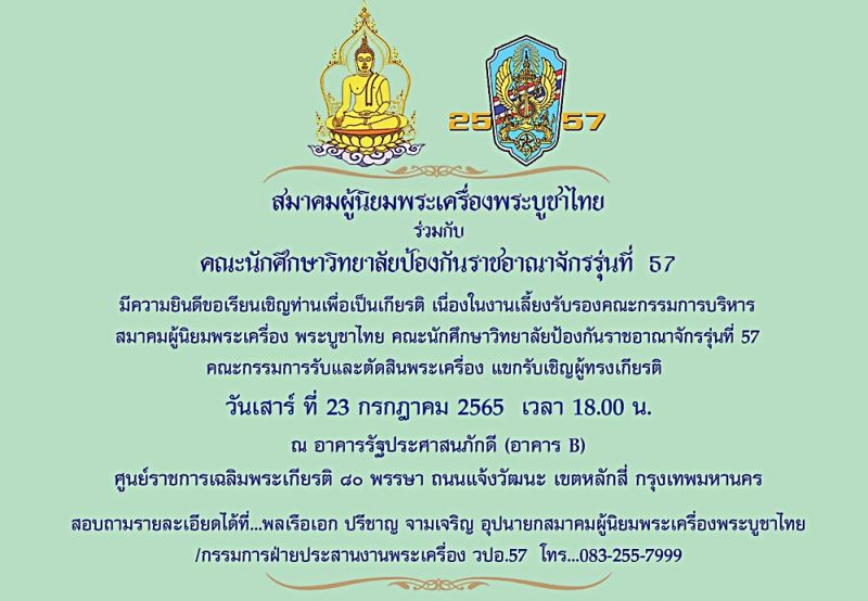 งานยักษ์ งานใหญ่ในรอบ 3 ปี มหกรรมการประกวดการอนุรักษ์พระบูชา พระเครื่องและเหรียญคณาจารย์ โดยพลเรือเอกปรีชาญ จามเจริญ อุปนายกสมาคมผู้นิยมพระเครื่องพระบูชาไทย กล่าวว่า 3 ปีที่รอคอย ร่วมงานประกวดพระเครื่องของสมาคมผู้นิยมพระเครื่องพระบูชาไทยในกรุงเทพฯ ขณะนี้ทุกอย่างลงตัวแล้ว สามารถจัดได้ งานแรกเป็นมหกรรมการประกวดการอนุรักษ์พระบูชา พระเครื่องและเหรียญคณาจารย์ทั่วประเทศของคณะนักศึกษาวิทยาลัยป้องกันราชอาณาจักร (วปอ.)รุ่นที่ 57