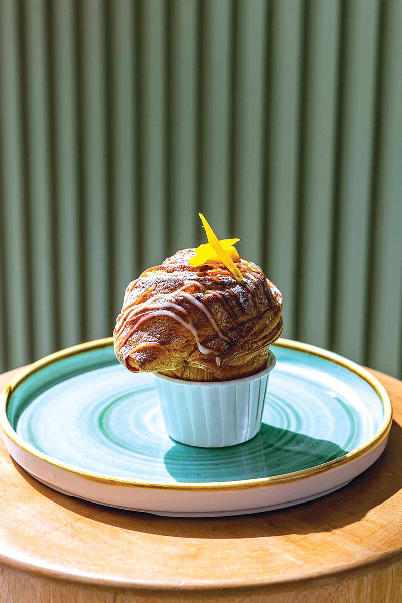 จานถัดมาพบกับรสชาติที่คุ้นเคยในขนม Thai Tea, Black Coffee Gelee Croissant ครัวซองต์สอดไส้รสชาติที่คุ้นเคยอย่างชาไทย โดยมีเซอร์ไพรส์จากเจลลีกาแฟที่ช่วยเพิ่มมิติรสขมนิดๆ ให้กับครีมชาไทย จานสุดท้ายคือ Mango, Coconut Rice and Caramel Cruffin ครัฟฟินที่ได้รับแรงบันดาลใจจากข้าวเหนียวมะม่วง ออกมาเป็นการผสมผสาน อันหลากหลายในขนมแบบตะวันตก แป้งครัวซองต์มาอบในทรงมัฟฟินสอดไส้ ขนมหวานสไตล์ฝรั่งเศสอย่างข้าวพุดดิ้ง riz au lait ท็อปด้วยมะม่วง และเสริมด้วยคาราเมลเพิ่มความหอมหวาน