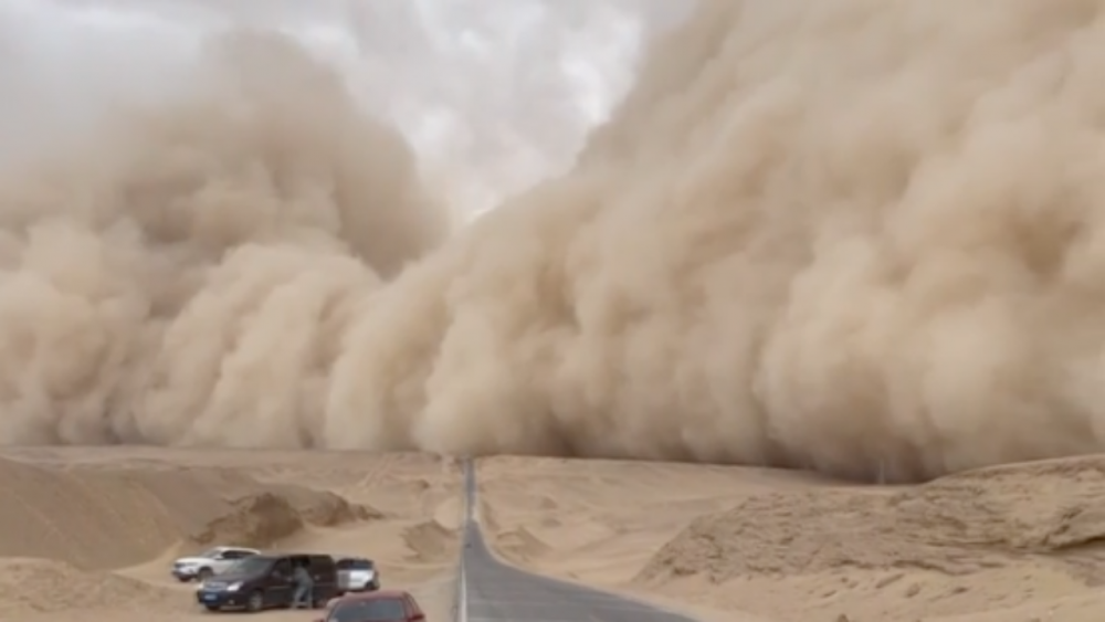 พายุทรายขนาดมหึมาเคลื่อนตัวเป็นแนวเข้าปกคลุมเมืองในมณฑลชิงไห่ ประชาชนต่างพากันขับรถหนีตายกันจ้าละหวั่น ราวกับฉากหนึ่งในภาพยนตร์