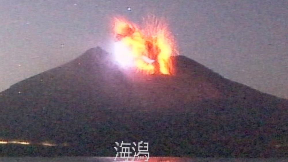 ภูเขาไฟซากุระจิมะ บนเกาะคิวชู ของประเทศญี่ปุ่น ปะทุรุนแรงในคืนวันอาทิตย์ ทำให้ทางการต้องเตือนประชาชนใกล้เคียงให้อพยพ และยกระดับการเตือนภัยสู่ขั้นสูงสุด