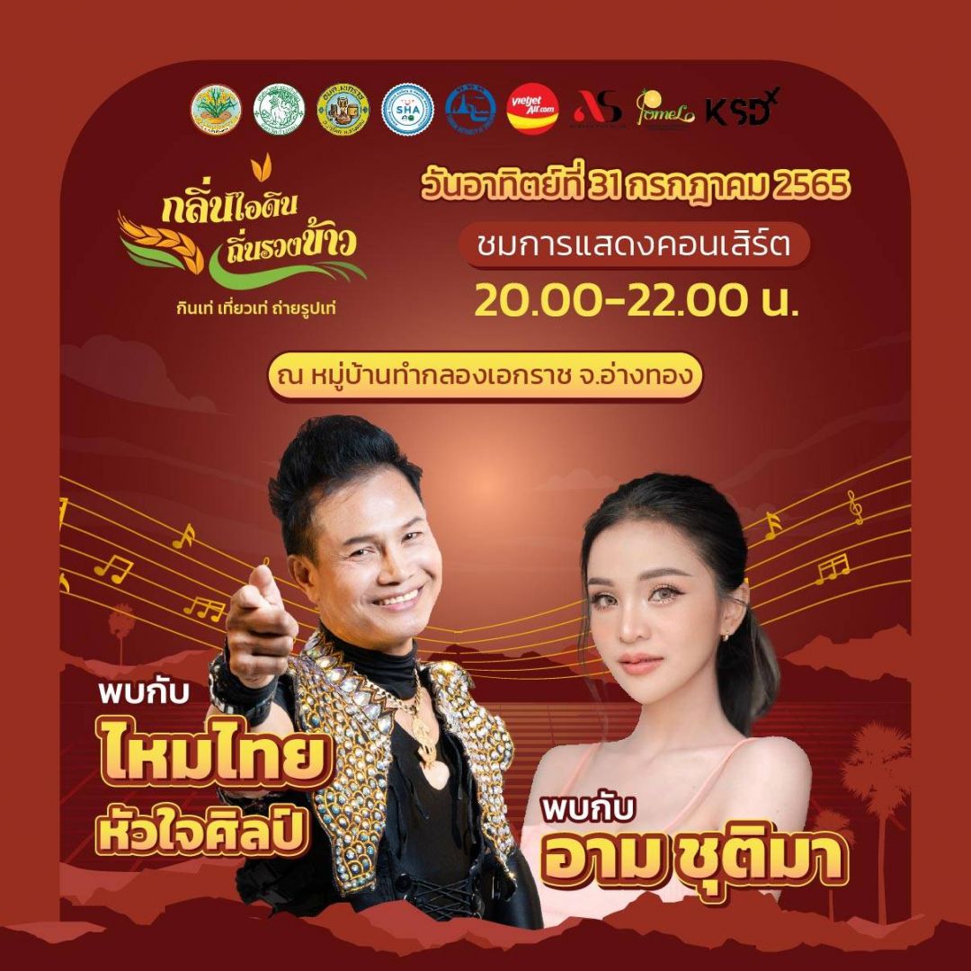 บริษัท เคเอส ดิจิทัล จำกัด กำหนดจัดงาน “กลิ่นไอดิน ถิ่นรวงข้าว” ปลุกกระแสการท่องเที่ยวไทยให้คึกคัก สร้างประสบการณ์ที่ทรงคุณค่าให้แก่นักท่องเที่ยว ด้วยการเนรมิตหมู่บ้านทำกลองเอกราช จังหวัดอ่างทอง ผ่านกิจกรรมทางวัฒนธรรม หัตถกรรมพื้นบ้าน อาหารถิ่น การแสดงลิเกและรำกลองยาว ในวันที่ 29-31 กรกฎาคม 2565 เวลา 16.00 – 22.00 น. ณ หมู่บ้านทำกลองเอกราช จังหวัดอ่างทอง รับชมฟรี