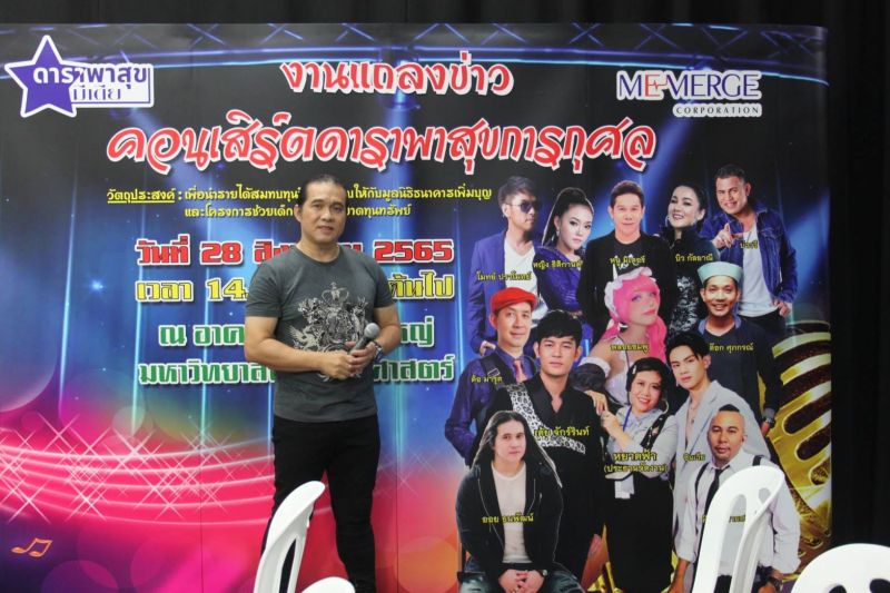 งานแถลงข่าว “คอนเสิร์ตดาราพาสุขการกุศล” ศิลปินนักร้องมาร่วมงานอย่างคับคั่งพร้อมด้วยแขกรับเชิญและผู้สื่อข่าวจัดเต็ม เมื่อวันที่ 21 ก.ค. 2565 ณ Gvillage Bangkok ลาดพร้าว18 รายได้จากการจัดงานครั้งนี้เพื่อนำไปซื้อรถมูลนิธิให้กับมูลนิธิธนาคารเพิ่มบุญและมอบเป็นทุนการศึกษาให้แก่เด็กเรียนดีแต่ขาดแคลนทุนทรัพย์