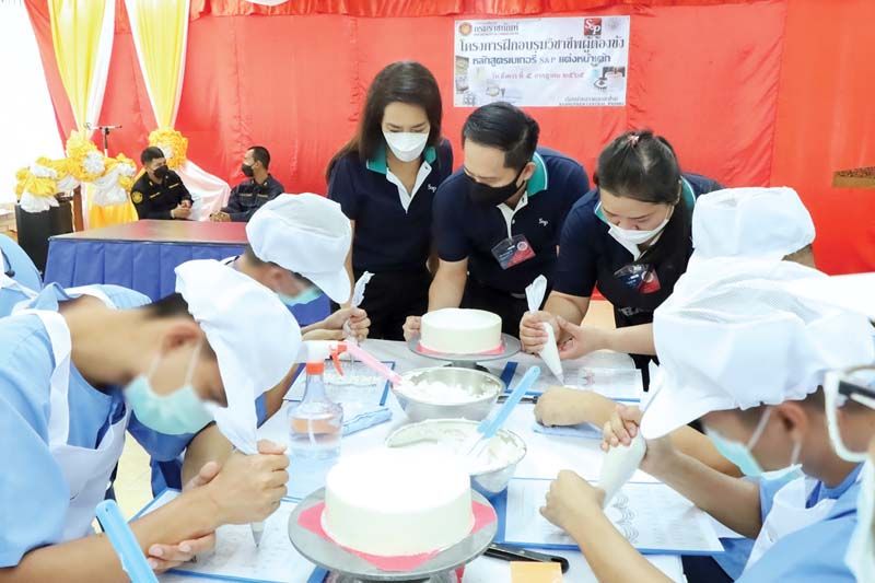 โดยในปีนี้ได้อบรมความรู้แก่ผู้ต้องขัง 3 แห่ง ทั้งในกรุงเทพฯและจังหวัดใกล้เคียง ได้แก่ 1.อบรมหลักสูตรอาหาร “ราดหน้าหมูหมัก” ณ เรือนจำจังหวัดนนทบุรี 2.อบรมหลักสูตรเบเกอรี่ “การแต่งหน้าเค้ก” ณ เรือนจำกลางคลองเปรม 3.อบรมหลักสูตรเครื่องดื่ม “การชงเครื่องดื่ม” ณ เรือนจำกลาง จังหวัดนครปฐม โดยมีวิทยากรผู้เชี่ยวชาญในแต่ละด้านมาให้ความรู้
