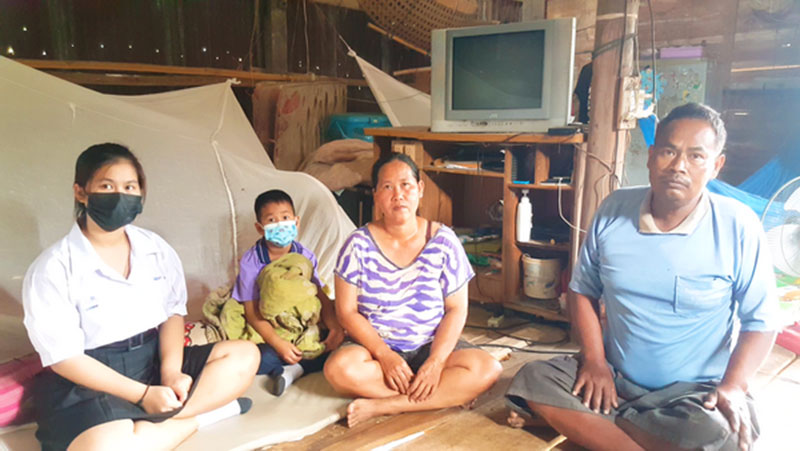 นางอรัญ บุญเรือง อายุ 43 ปี แม่น้องพลอย บอกว่า ในบ้านอาศัยอยู่ด้วยกัน 4 คน มีตนเองกับสามี และน้องพลอย (ลูกสาวคนโต) กับน้องหมีพูล (ลูกชายคนเล็ก) อายุ 7 ขวบ เรียนชั้น ป.1 โรงเรียนวัดวังสวรรค์ ประกอบอาชีพทำนา ทำไร่ยาสูบ ปีละครั้ง และรับจ้างทั่วไป มีรายได้เดือนละ 1,000 บาท แบ่งให้ลูกสาวคนโตไปโรงเรียนวันละ 40 บาท แต่บางวันก็ไม่มีให้ และให้ลูกชายคนเล็กไปโรงเรียนวันละ 20 บาท แล้วสามีก็ป่วยด้วยหลายโรคมา 2 ปีแล้ว ทั้งน้ำท่วมปอด หัวใจโต โรคตับ ความดัน และป่วยโรคไต ระยะที่ 2 ทำงานหนักไม่ได้ เหนื่อยง่าย กลางคืนนอนหายใจไม่ออก ก็ต้องลุกมานอนเปลที่แขวนไว้กลางบ้าน