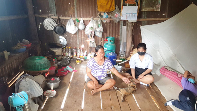 นางอรัญ บอกว่า จริงๆแล้วไม่อยากให้ลูกสาวไปทำงานกลับดึก เพราะห่วงความปลอดภัย แล้วด้วยความคับแคบของบ้าน ทำให้ตอนนี้ลูกสาวต้องย้ายไปนอนที่บ้านของอาซึ่งอยู่ใกล้ๆกัน เพราะทำงานดึก กลับมาก็ต้องเปิดไฟทำการบ้านงานกลุ่มต่ออีก ห่วงพ่อที่ป่วยจะนอนไม่หลับเพราะแสงไฟแยงตา ก็เลยต้องไปขออาศัยนอนบ้านอาเป็นการชั่วคราว