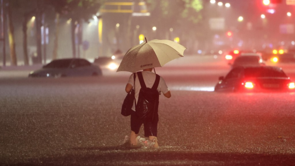 เมื่อวันที่ 9 ส.ค. สำนักข่าวยอนฮับ ของเกาหลีใต้ รายงานว่า เกิดฝนตกหนักนานกว่า 24 ชั่วโมงในพื้นที่กรุงโซล จังหวัดคยองกี และพื้นที่อื่นๆ ทางภาคกลางของประเทศ อย่าง เมืองอินชอน และจังหวัดคังวอน ส่งผลให้เกิดน้ำท่วมสูงฉับพลันตามท้องถนน โดยระดับน้ำท่วมสูงทำให้มีรถยนต์หลายสิบคัน ตลอดจนรถบัสถูกน้ำท่วมเกือบมิดคัน นอกจากนี้ยังมมีน้ำไหลทะลักลงไปท่วมสถานีรถไฟใต้ดิน