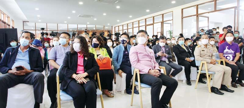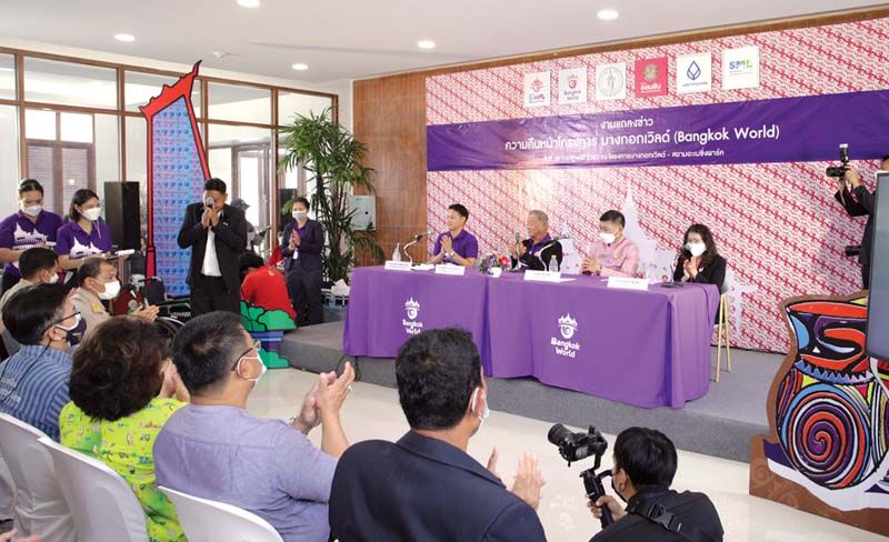 ขจิต ชัชวานิชย์ ปลัดกรุงเทพมหานคร, ดร.ไชยวัฒน์ เหลืองอมรเลิศ ประธานที่ปรึกษา กลุ่มบริษัทสยามพาร์คซิตี้, อรรถชัย เหลืองอมรเลิศ ผจญ.โครงการบางกอกเวิลด์ และ ปรางมาศ เธียรธนู ผช.ผอ.ธ.ออมสินสายงานพัฒนาธุรกิจผู้ประกอบการรายย่อยและ SME Start ร่วมกันแถลงข่าวความคืบหน้าโครงการชั้นนำ “บางกอกเวิลด์ BangkokWorld”