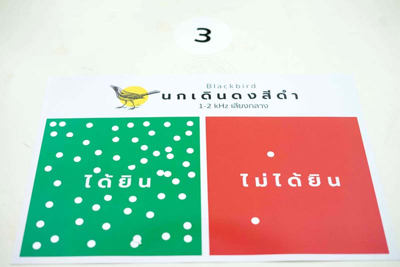อ.ดร.พญ.นัตวรรณ อุทุมพฤกษ์พร ได้กล่าวเสริมว่า “เนื่องจากนกแต่ละตัวที่ทีมวิจัยเลือกมา จะมีเสียงร้องที่มีระดับความถี่หรือที่เราเรียกว่า เฮิรตซ์ ต่างกัน ซึ่งโดยทั่วไป ผู้ที่สูญเสียการได้ยิน จะเริ่มจากเสียงที่มีระดับความถี่สูง ดังนั้นการจัดนิทรรศการบ้านนกนี้ จะเป็นการกระตุ้นให้ผู้เข้าชมสามารถประเมินตนเองได้ในเบื้องต้นเพราะเนื่องจากผู้สูงอายุส่วนใหญ่ที่มีภาวะสูญเสียการได้ยินเล็กน้อย จะยังได้ยินเสียงที่มีระดับความถี่ต่ำ ทำให้คิดว่าตนเองไม่มีปัญหาอะไรและละเลยการตรวจคัดกรอง รวมถึงการดูแลตนเองที่สามารถป้องกันได้ ซึ่งนิทรรศการ “เสียงนั้น เธอได้ยินบ้างไหม” ในครั้งนี้ได้รับการตอบรับและความสนใจจากผู้เข้าชมเป็นอย่างดี ดังนั้นทางทีมวิจัยจึงจะจัดให้ความรู้กับผู้สูงอายุในสถานที่พักผู้สูงอายุอื่นๆ ต่อไป”