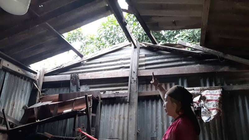 จากการสอบถามนายประกอบ บุญรอด อายุ 48 ปี อยู่บ้านเลขที่ 25/5 หมู่ 4 ตำบลลาดหลุมแก้ว อำเภอลาดหลุมแก้ว จังหวัดปทุมธานี ช่วงเลิกงานมาจากที่ทำงานประมาณ ช่วงเย็นวันที่ 15 ที่ผ่านมา ตนเห็นว่าฝนกำลังจะตกเลยไปเก็บเสื้อผ้าที่ตากเอาไว้ สักพักมีลมแรงมาก็หันเห็นต้นคูนปลายต้นโยกลงมาถึงต้นกล้วยเลย ตนก็คิดในใจว่าฝนมาแรงแน่ๆ แปปเดียวต้นคูนหักลงมา แล้วกระเบื้องก็บินตามเลย ตอนนั้นลมแรงมาก เสียงลมดังซู่ๆมาเลย ที่บ้านได้รับความเสียหายเยอะมาก หลังคาหายหมด ฝาบ้านก็พัง
