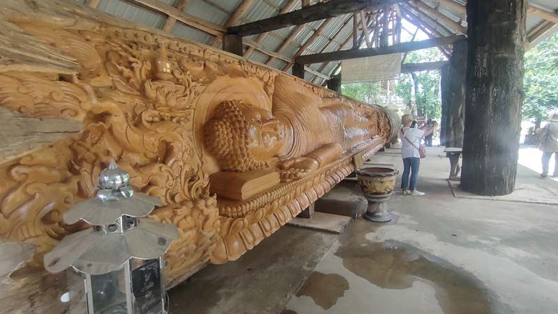 โดยไปไหว้ตะเคียนยักษ์แม่ศรีประภาไพ ที่นำมาจากภาคใต้ ต้นนี้เพื่อมาแกะเป็นรูปพุทธประวัติ ปางปรินิพานและอีกด้านหนึ่งแกะเป็นปางพระนอนไสยาสน์ที่ ที่ตั้งตระหง่านอยู่หน้าวัด เพื่อให้นักท่องเที่ยวได้ขอพร ขอโชคลาภ ซึ่งที่ผ่านมามีชาวบ้านต่างถูกหวยกันมาหลายงวดติดต่อกัน แล้ว พร้อมทั้งภายในวัดนั้นมี ที่เที่ยวหลายจุดเช่นไปไหว้แม่กวนอิมพันมือ ในถ้ำเขาประทุน และบนยอดเขามหาเจดีย ที่ตั้งอยู่บนยอดเขาถ้ำประทุน โดยต้องขึ้นบันไดปูนเดินไปยังยอดเขา พร้อมสภถานที่ถ่ายรูปโซฟี่ หลายพื้นที่