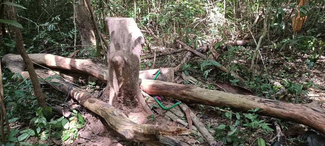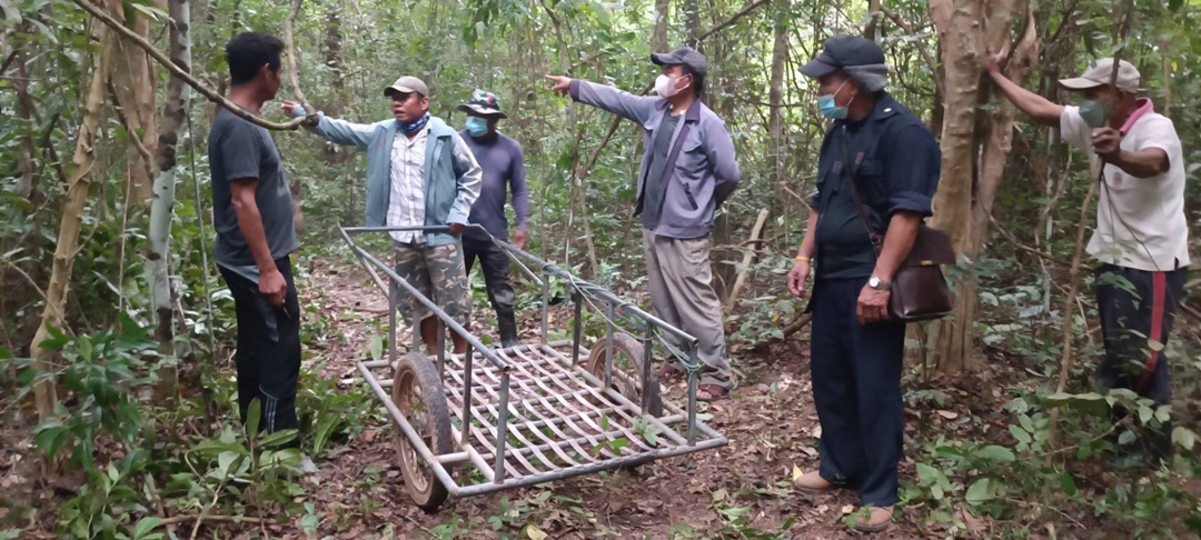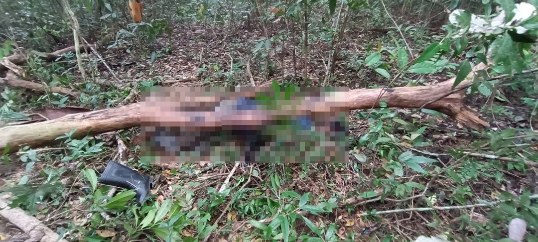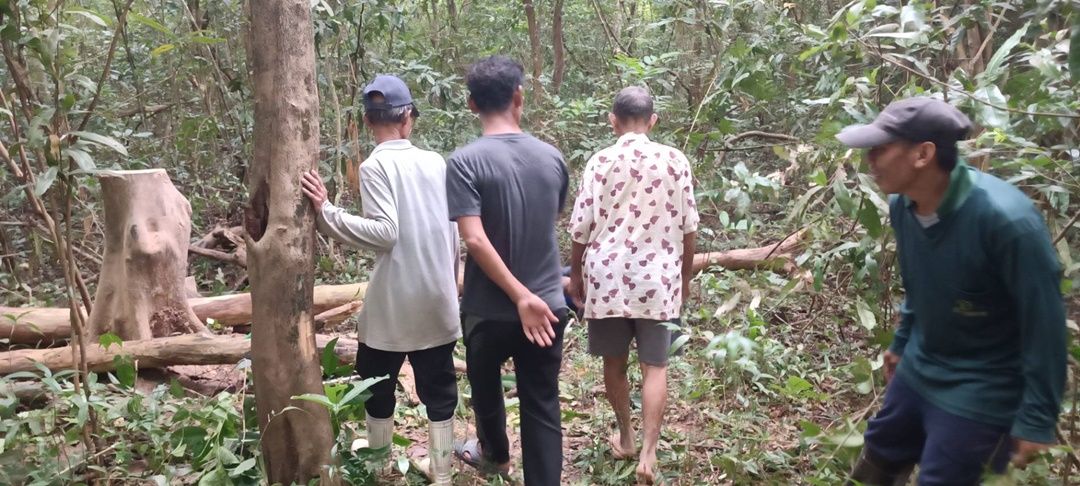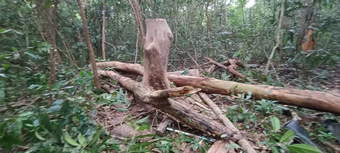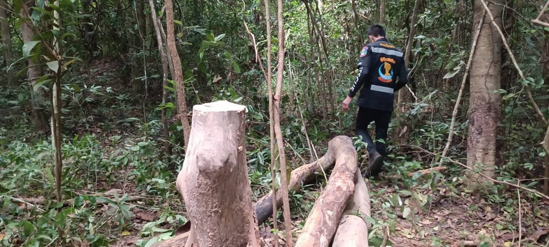 ตรวจสอบที่เกิดเหตุในป่าสาธารณะดงคำฮี พบต้นสะฝาง สูง 7 เมตร ถูกตัดกิ่งและถูกโค่นลง 2 ท่อนที่เกิดเหตุยังพบอุปกรณ์เลื่อยมือยาว 1 เมตร มีดพร้า ค้อนปอนด์ รองเท้าบู๊ท 1 คู่ ย่ามสีเหลืองห้อยกับกิ่งไม้ และล้อเข็นลาก ซึ่งเป็นของผู้ตายจอดอยู่