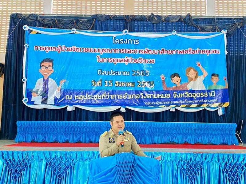 สำหรับในพื้นที่ อ.วังสามหมอ มีผู้ป่วยจิตเวชกว่า 400 คน เฉลี่ยแล้วใน อ.วังสามหมอ จะมีผู้ป่วยจิตเวชหมู่บ้านละ 5 คน อนาคตตนในฐานะนายอำเภอจะร่วมกับโรงพยาบาลจัดโครงการเพื่อดูแลผู้ป่วยจิตเวช โดยคาดว่าจะทำที่พักคอย สำหรับผู้ป่วยจิตเวชเพื่อรองรับกลุ่มคนจำพวกนี้