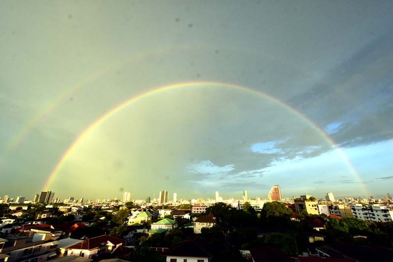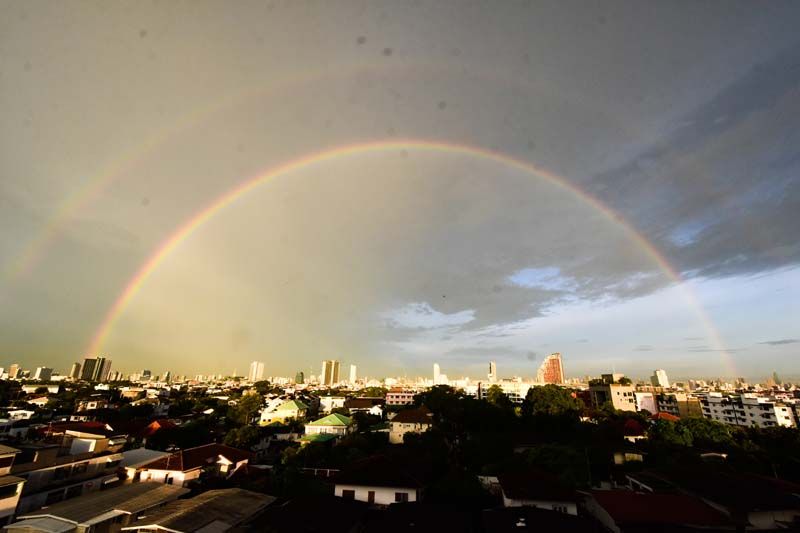 18 ส.ค.65 หลังจากที่เมื่อช่วงเย็นวันนี้ มีฝนตกหนักในหลายพื้นที่กรุงเทพมหานคร เมื่อฟ้าหลังฝนได้เกิดปรากฎการณ์รุ้งกินน้ำ 2 วง ซ้อนกันอย่างสวยงาม จนทำให้มีผู้พบเห็นพากันเก็บภาพนี้พร้อมทั้งยังมาแชร์บนโลกโซเชียลจำนวนมาก