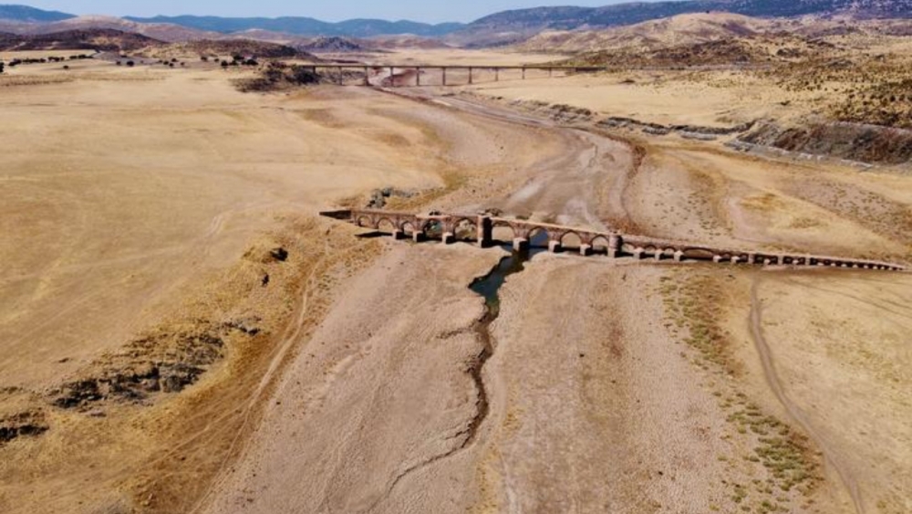 สภาพอ่างเก็บน้ำในสเปน เหือดแห้ง ระดับน้ำลดต่ำลงจนเห็นพื้นดินแตกระแหง ขณะที่สเปนเผชิญฤดูร้อนที่ร้อนและแห้งแล้งที่สุดเป็นประวัติการณ์