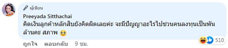 ล่าสุด เจ้าตัว รีบออกมาชี้แจงทันควัน ด้วยการโพสต์ผ่านเฟซบุ๊กระบุว่า แก้มบุ๋ม ที่เป็นข่าวโกงเงินอยู่ตอนนี้ ไม่ใช่หนูนะคะ เธอยังอัพเดทเพิ่มเติมขำๆว่า คิดเงินลูกค้าหลักสิบยังคิดผิดเลยค่ะ จะมีปัญญาอะไรไปชวนคนลงทุนเป็นพันล้านคะ สภาพ -009