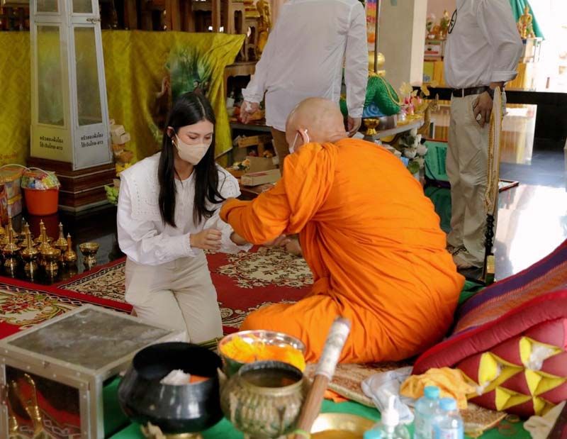 หายโศก “พระมหาเกริกเกียรติ นิรุตติเมธี”ทางเจ้าอาวาสได้มอบรูปหล่อของเจ้าแม่2 นางรุ่นแรก ที่ได้ผ่านการทำพิธีแล้วให้กับทางผู้จัดฯ “แป๊ป-ณฤทธิ์”และคณะเพื่อความเป็นสิริมงคล พร้อมกับให้พรแก่ทีมนักแสดง ทีมงานขอให้ละครเรื่องนี้ปังๆปิดท้ายทริปด้วยการเดินทางไปที่วัดพระธาตุบังพวนวัดดังเก่าแก่ของ จ.หนองคาย เพื่อไหว้สักการะพระธาตุบังพวน และขอพรความเป็นสิริมงคลจากสระพญานาค บ่อน้ำศักดิ์สิทธิ์ อีกหนึ่งสถานที่ที่เชื่อว่าเป็นที่สิงสถิตของพญานาคมุจลินท์