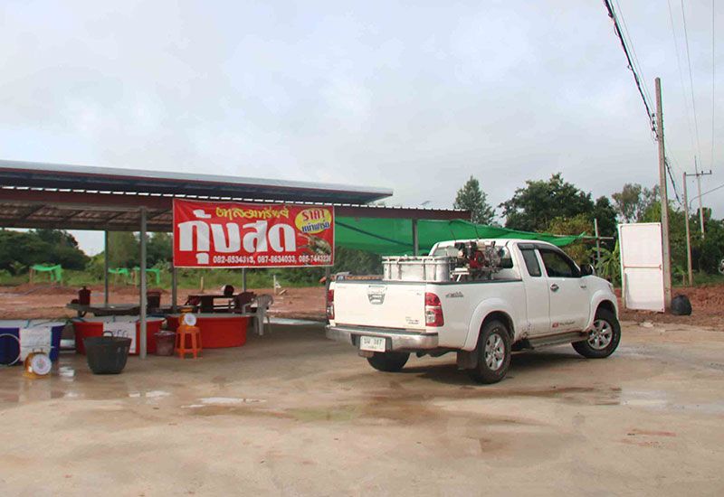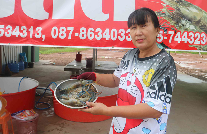 ทั้งนี้ นอกจากจะจับกุ้งจากบ่อมารอจำหน่ายที่ร้าน “ตาสมทรัพย์กุ้งสด” แล้ว ยังเปิดขายทางกลุ่มไลน์และเฟซบุ๊กอีกด้วย รับรองความสด เนื้อแน่น อร่อย ราคาหน้าฟาร์ม ไม่ผ่านพ่อค้าคนกลาง เพราะเลี้ยงเอง ขายเอง ถูกใจลดราคาให้ลูกค้าอีกด้วยทุกวัน โดยเปิดขายทุกวันตั้งแต่ 06.00 น.-18.00 น.