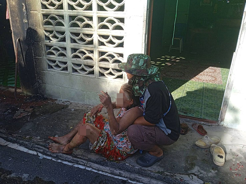 ยายพลั้งมือหมุนวาล์วแก๊สแรง ไฟลุกพรึบคลอกลำตัว ใจแข็งกลิ้งถังแก๊สออกนอกบ้าน