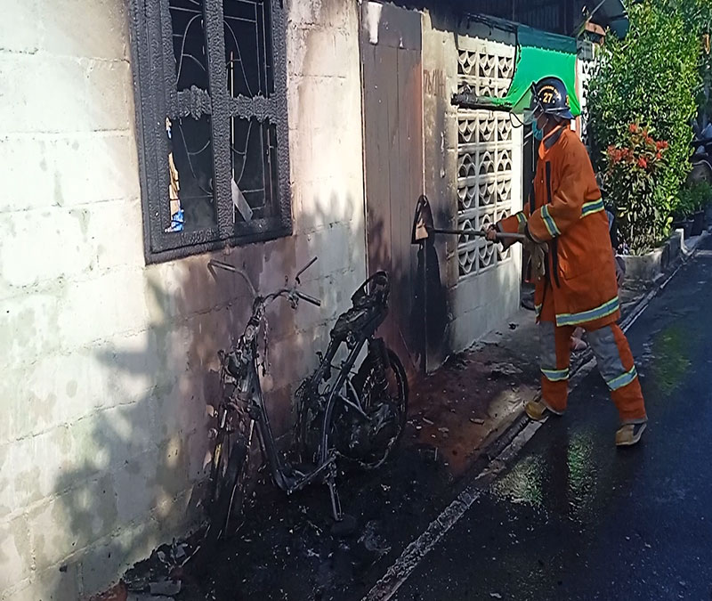 ที่เกิดเหตุบริเวณข้างบ้านหลังดังกล่าว พบซากรถจักรยานยนต์ถูกไฟไหม้เสียหายทั้งคันไฟ ลามไปที่หน้าต่างซึ่งเป็นห้องพักนอกจากนี้พบผู้บาดเจ็บ 1 ราย ทราบชื่อนางทองคำ เขียวกอ อายุ 75 ปี เจ้าของบ้านหลังที่เกิดเหตุ ได้รับบาดเจ็บถูกไฟคลอกตามลำตัว เจ้าหน้าที่จึงช่วยกันปฐมพยาบาลเบื้องต้น ก่อนนำตัวส่งรักษาอาการบาดเจ็บที่โรงพยาบาลบ้านฉาง