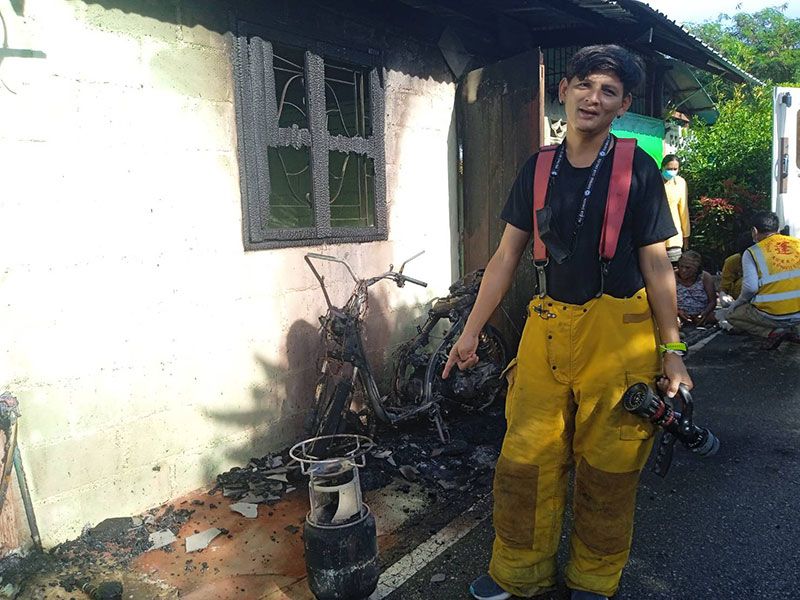 นางทองคำ เล่าว่า ก่อนเกิดเหตุอยู่บ้านคนเดียวลูกชายได้ออกไปขายหมูปิ้งหน้าปากซอย ส่วนตนอยู่บ้าน ก็เตรียมจะทำกับข้าวเหมือนทุกวัน ได้นำกระทะไปตั้งที่ถังแกส จุดไฟ แต่มือได้พลั้งเปิดวาล์วแก๊สแรงทำให้ไฟลุกพรึบ เห็นดังนั้นก็พยายามเอื้อมมือเข้าไปเพื่อปิดวาล์ว จนถูกไฟลวกตามลำตัว เมื่อเห็นไฟยังลุกรุนแรงก็ได้วิ่งไปหยิบพลั่วพรวนดิน นำมาเขี่ยตัวถังแกสที่ยังมีเปลวไฟลุกอยู่ให้กลิ้งออกไปไหม้นอกบ้าน ซึ่งถังแกสได้กลิ้งออกไปบริเวณด้านนอกบ้าน แต่ก็ยังไม่พ้น เพราะกลิ้งไปถูกรถจักรยานยนต์ที่จอดอยู่ข้างบ้าน ลุกลามติดตัวถังรถจักรยานยนต์ก่อนจะไหม้รถไปหมดทั้งคัน เพื่อนบ้านมาพบจึงโทรศัพท์แจ้งเจ้าหน้าที่นำรถดับเพลิงมาช่วยดับไฟก่อนที่จะลุกลามไหม้บ้านทั้งหลัง