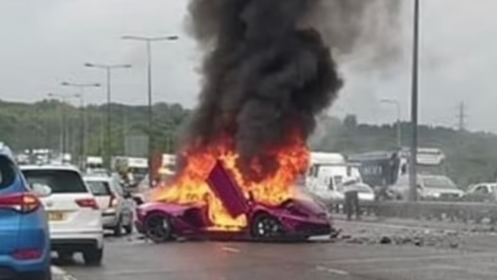 มีคนเห็นเหตุการณ์ ถ่ายคลิปวิดีโอและเผยแพร่ภาพเหตุการณ์ รถสปอร์ตหรูลัมโบร์กินี อะเวนทาดอร์ สีม่วง ราคาประมาณ คันละ 270,000 ปอนด์ หรือราว 11.5 ล้านบาท (คิดในอัตราแลกเปลี่ยน 1 ปอนด์ เท่ากับ 42.6 บาท) เกิดเพลิงไหม้ หลังชนกับรถมาสดา CX5 โดยเจ้าหน้าที่ตำรวจสถานีตำรวจยอร์กเชียร์ตะวันก หน่วยดับเพลิงและกู้ภัยได้รับแจ้งเหตุ และรีบรุดมายังจุดเกิดเหตุทันที