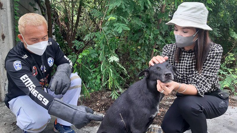 ใจร้ายยิงหมาดำ! ฉมวกเหล็กเสียบทะลุท้อง พลเมืองดีแจ้งกู้ภัยช่วย