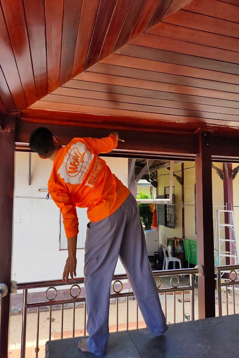 ทั้งนี้ ผู้แทนจาก บริษัท เบเยอร์ จำกัด ร่วมลงพื้นที่สำรวจ พร้อมมอบผลิตภัณฑ์ สีย้อมไม้ เบเยอร์ ซูพรีม ชนิดเคลือบใส สำหรับเคลือบสีย้อมไม้เก่าให้ดูใหม่ ทนทาน และสวยงามขึ้น สามารถใช้ได้กับผนังไม้หรือพื้นที่แนวตั้ง ทั้งภายนอกและภายใน อาทิ ผนัง ฝาบ้าน วงกบ ประตู หน้าต่าง เชิงชาย จั่วบ้าน ไม้ระแนง รั้ว เป็นต้น โดยมี บริษัท ว้าว เดคอร์ จำกัด ผู้เชี่ยวชาญด้านงานบริการทาสี ภายใต้ชื่อ WOW Premium Paint Service นำทีมช่างมืออาชีพเข้าประเมินพื้นที่หน้างาน เพื่อเตรียมการสนับสนุนงานบูรณะศาลาปฏิบัติธรรมด้วยผลิตภัณฑ์สีงานไม้ เบเยอร์ ให้คืนความงดงามตามธรรมชาติของไม้ดังเดิม